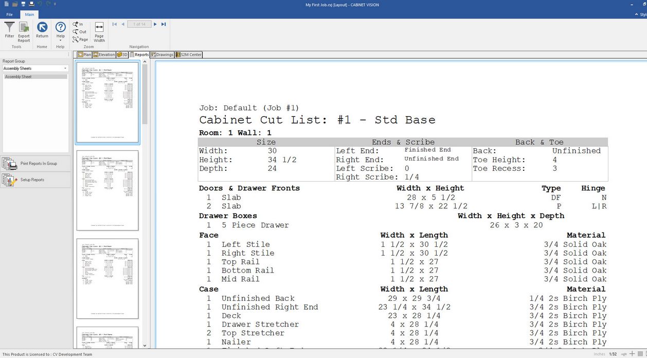 plná kontrola nad výstupy ze systému CABINET VISION s možností výpočtu reálné spotřeby materiálu na
