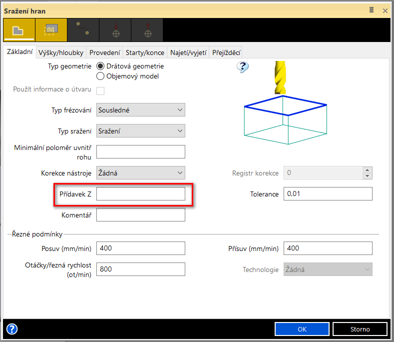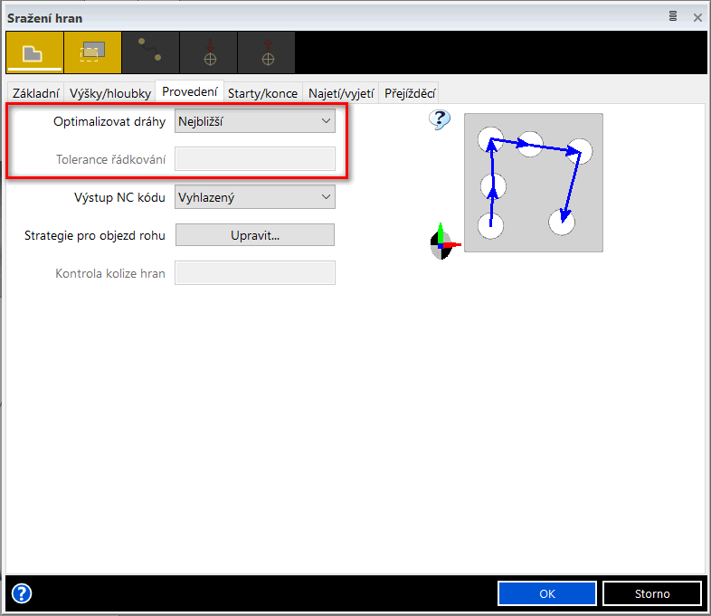- cyklus srážení hran nyní disponuje možností třídění drah, možností stanovení přídavku v ose Z a hloubky záběru,
