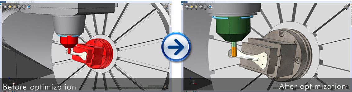 Díky nástroji NCSIMUL Optitool může uživatel definovat vlastní parametry nájezdu a přísunu, aby se minimalizovalo obrábění vzduchu a maximalizovalo využití rychloposuvů (nebo vysokorychlostního pracovního posuvu).