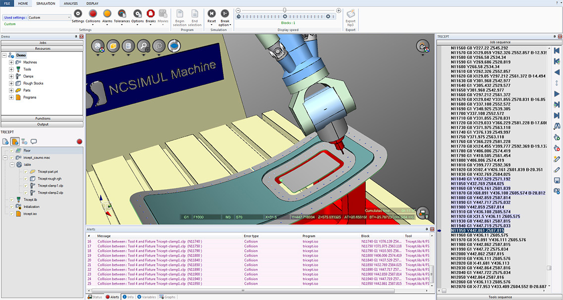 • Kompletní simulace «stroj-obráběný díl» s detekcí všech typů kolizí v jediném procesu