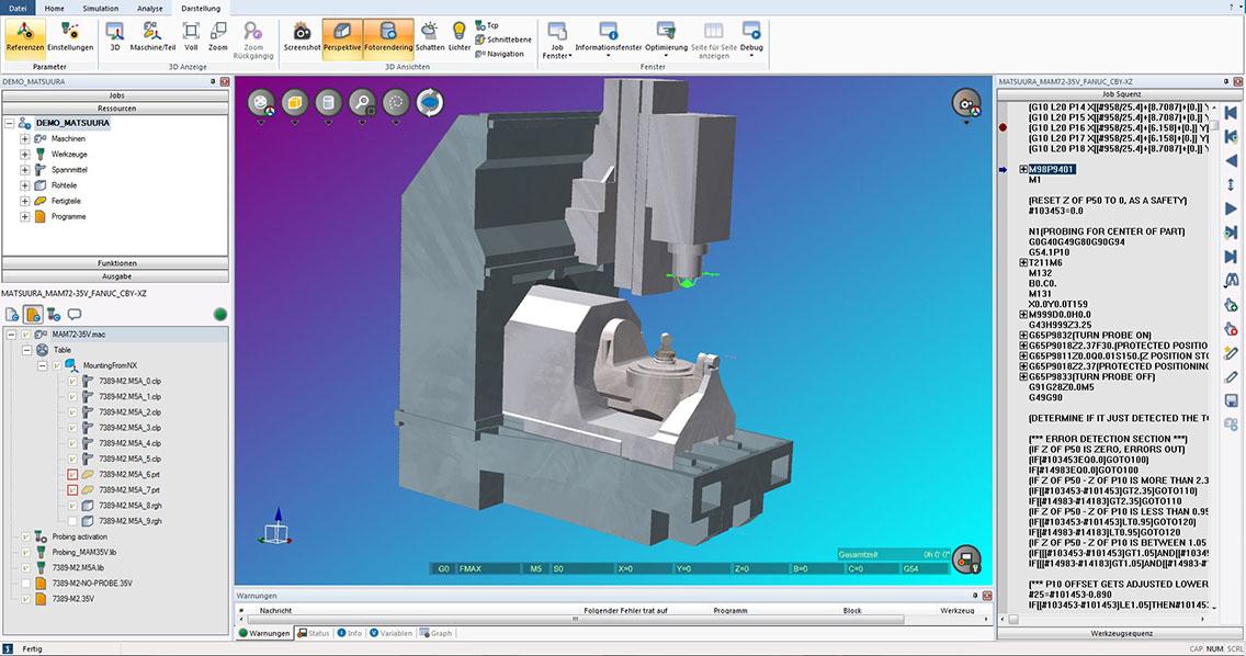 NCSIMUL SOLUTIONS simplifies and digitalizes this process: before implementation, the NC programme gets verified, checked for errors and simulated – ensuring 100% collisions safety on the machine. An optimization of the NC program can reduce dramatically the machining time by further 20%. Decisive for the set-up procedure itself: the simulated program can be generated automatically also as a 3D NC video. With NCSIMUL Player the machine operator can thus call up the simulation via an integrated player. In this way he has all relevant NC information available in an interactive 3D view, also when using mobile devices like, for example, a Panasonic Toughpad. Additional information such as tool descriptions, procedures, instructions can be called up directly from the related tool data bank.