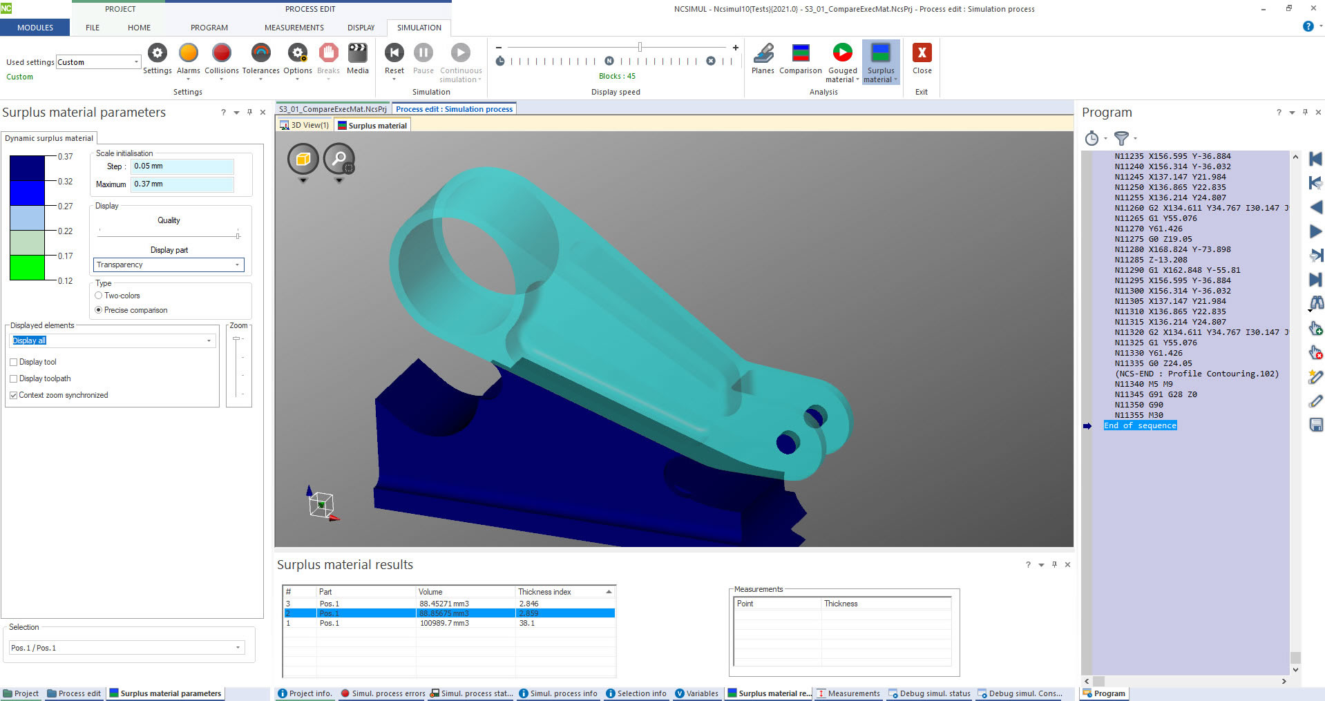 The 2021 release features a new comparison mode which detects excessive material, during a fast and hidden simulation. It shows a solid comparison between the CAD/CAM models or previous cut stock and the NCSIMUL simulated model.