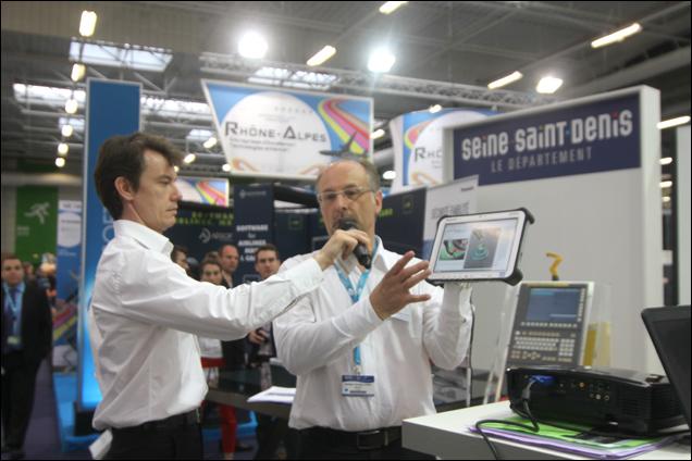 As a first Worldwide preview, with US and French press and key customers and prospects in attendance, the SPRING Technologies Corporate team ran a live demo showcasing the connection between work instruction sheets and a machine’s CNC control. The demonstration presented the company’s NCSIMUL Player 9 running on the latest Panasonic Toughpad tablet PC (FZ-G1) and its connection with the FANUC 31i B5 CNC machine tool control.