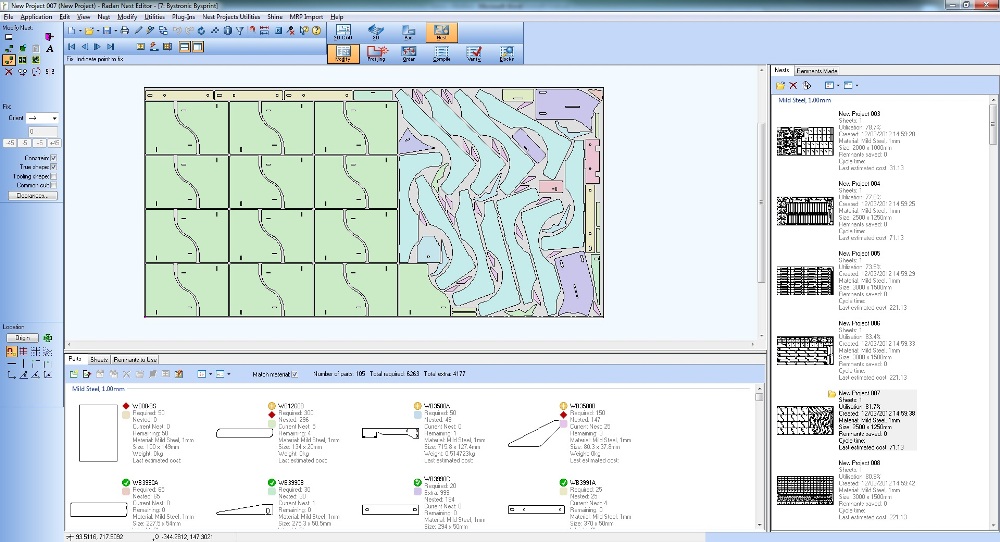 Colour: Parts in nest projects now have colour assigned to them. In total 32 different colours are distributed over the items in the parts list. The nesting colours are also used when generating the setup sheet.