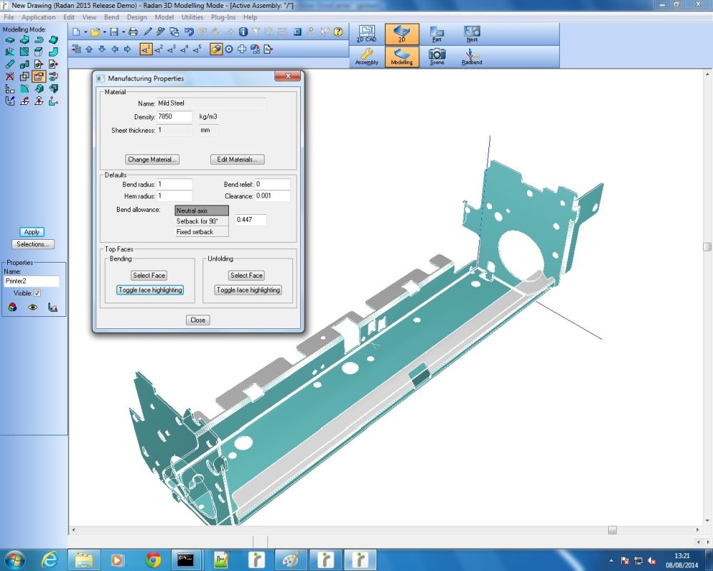 This is aided by strengthened 3D translation procedures, which he says import information more consistently. The routines for automatically calculating the thickness of imported parts have also been redesigned giving faster and more accurate results. Automatic face selection now applies to unfolding, and there is a simple way to manually specify the top face much earlier in the process. “Telling Radbend at the 3D stage which is the protected face ensures the visible face of the part is scratch-free.”