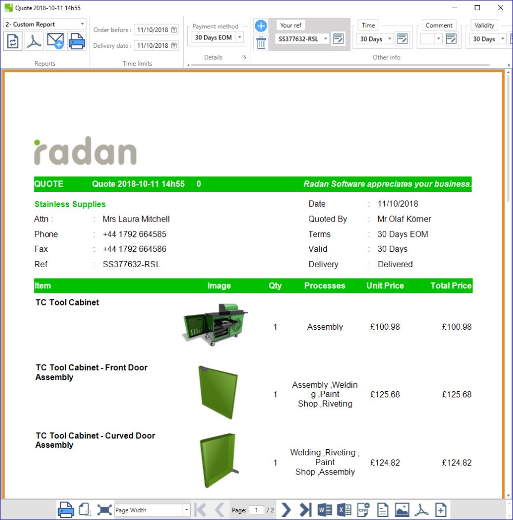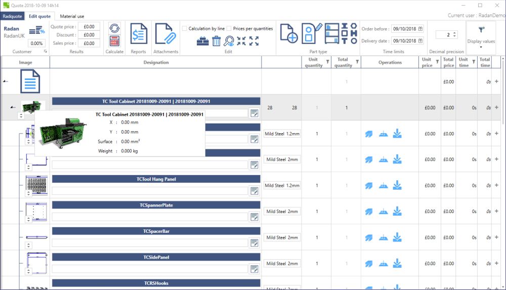 Radquote not only competitively calculates costing on sheet metal, but all aspects of quoting are now included – such as cutting, bending, welding, painting and assembly.