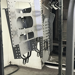 “We program the holes so tight that they’re oversized for the paint and the primer, with just enough room so that the paint won’t crack when we put it all together,” Nelson says. “All of the holes that we used to drill are cut with a laser and we only use a tape measure one time when we’re programming the chair. It makes it almost idiot proof.”