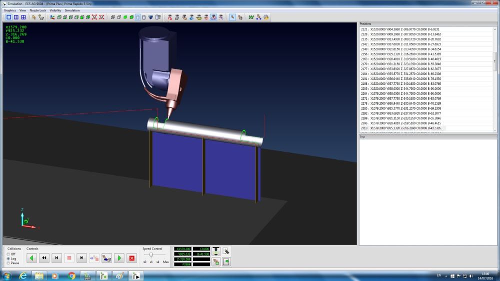 The toolpaths are accurately simulated on screen, showing the angle of the nozzle as it moves around the part, providing instant feedback on whether or not a specific move is possible. If any collisions are detected they are highlighted both on the model and via on-screen messages.