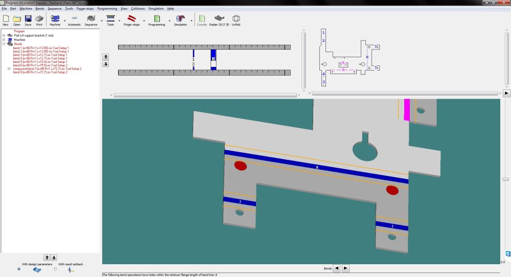 The Radbend module now highlights where holes are at risk of deforming by being close to bends. Also, the operator can switch between Design and Result Values. “This is particularly valuable where Radbend shows that the end result of a radius, for example, may be different from how it’s designed. Selecting which values gives the user more control over the finished bend, depending on whether it’s vital that they stay with the design values, or if the end result values are acceptable.”