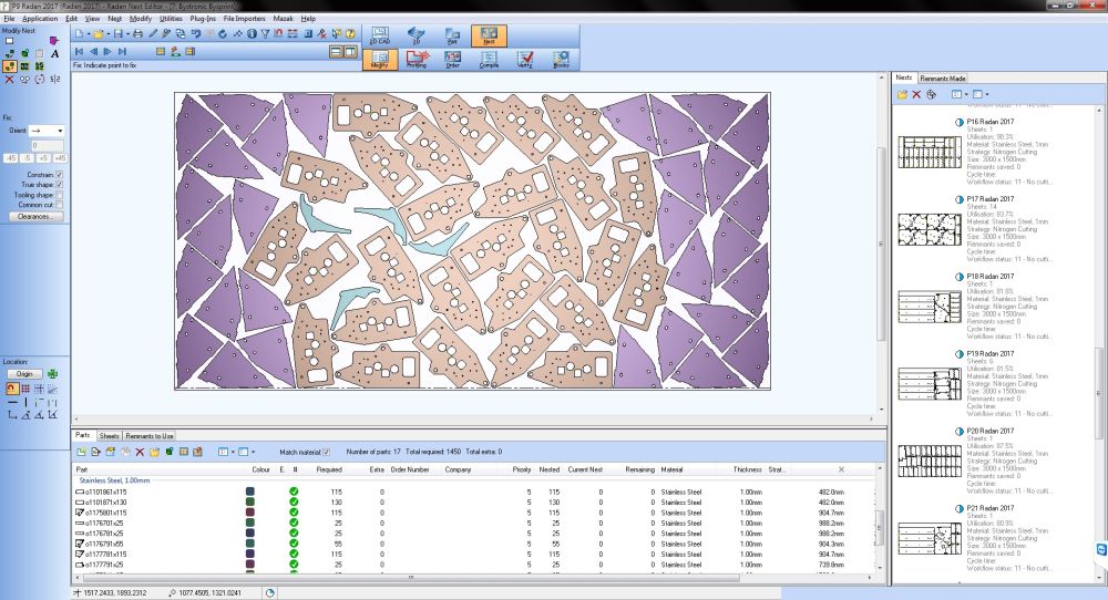 RADAN 2017 addresses danger of scrap flying off, sliding under the sheet, or damaging the tools on punching machines, by flagging up where floating scrap will occur. For Profiling, the Autotooling routines are now more efficient in placing tags, or microjoints, for common cutting. And the foil cutting function has been extended to scrap, ensuring that where sheets are covered with a protective foil for laser cutting, clean cuts can be made for scrap, too.