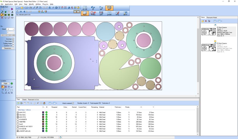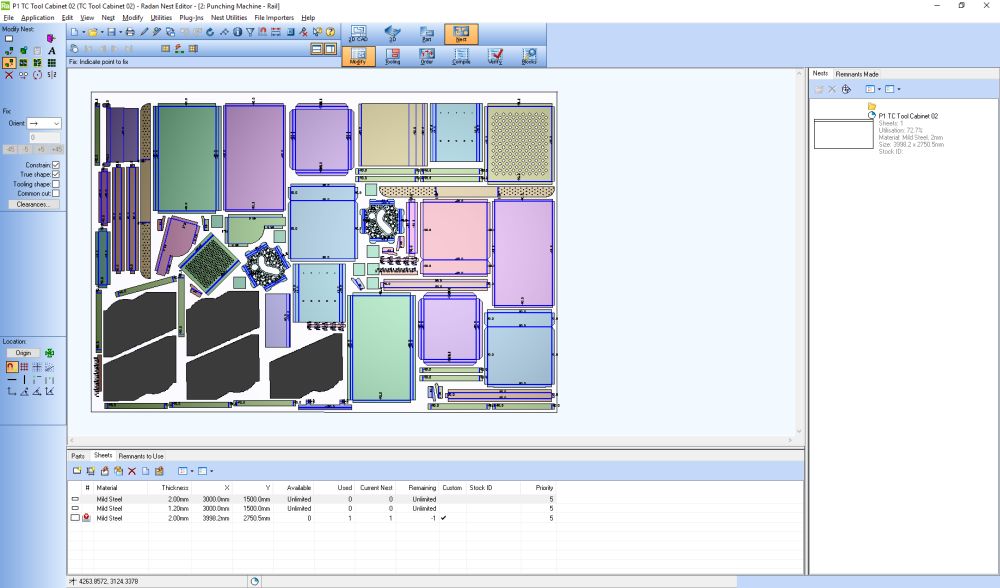 The Batch Nest function now benefits from a stronger web option which allows parts to be nested evenly across a sheet. This is optimised for the best cut option, where nothing else will fit on the sheet, and is particularly useful to stop sheets moving on punch presses, while preventing heat build-up on lasers by ensuring an adequate space between parts.