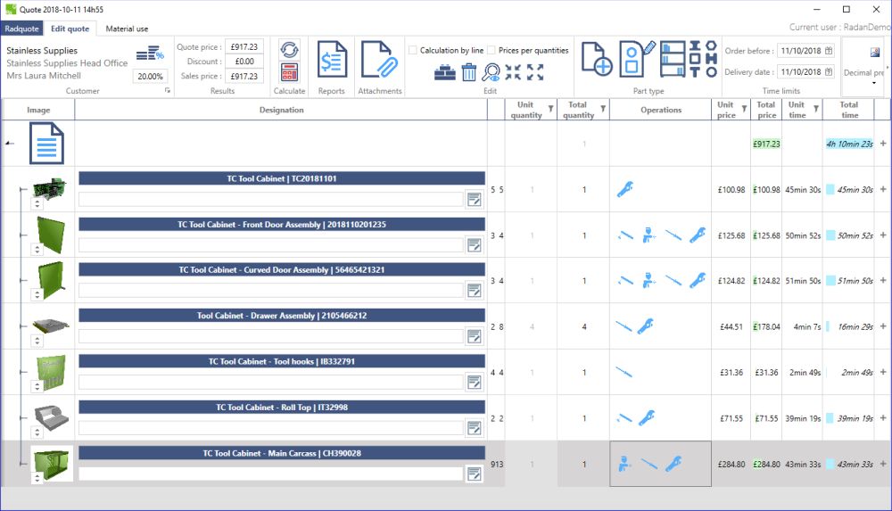 Radquote not only competitively calculates costing on sheet metal, but all aspects of quoting are now included – such as cutting, bending, welding, painting and assembly.