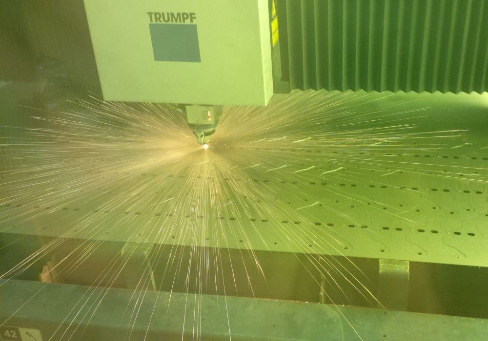 The wide range of components includes covers, brackets and gear trays for heating and air conditioning companies; chassis and front panels for electronics; and front and back amplifier panels, along with internal bracketry for speakers. They also laser cut a complex pumping component for a brewery, which is installed in pub cellars as part of a more efficient way of changing beer barrels.